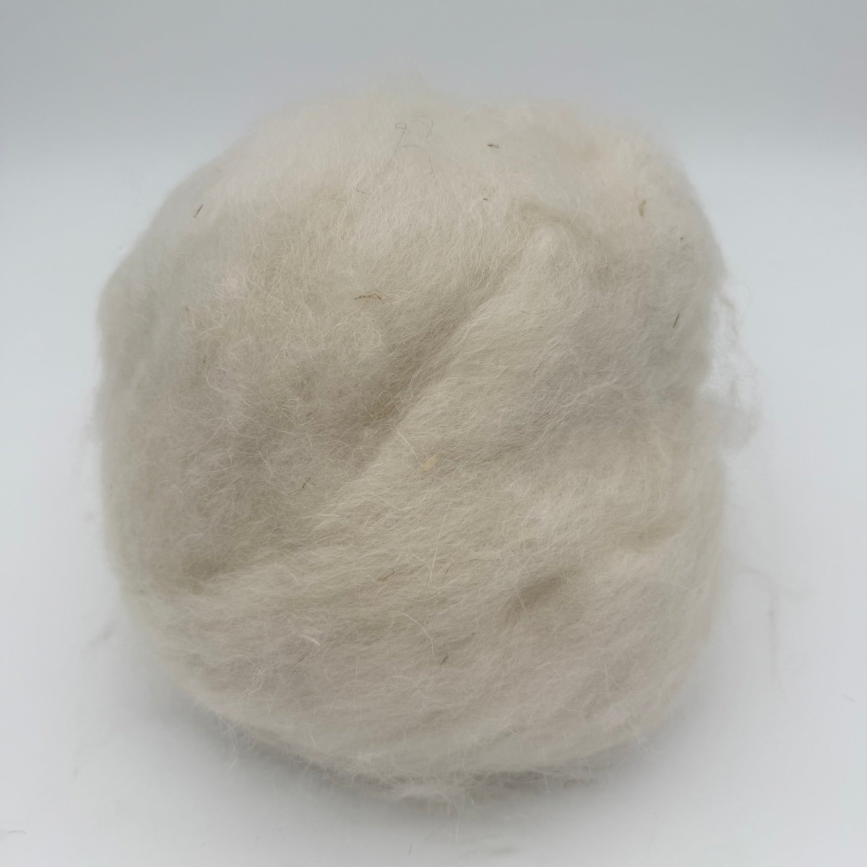 These white Angora Goat batts are hand-processed by a wonderful local farm! Patt carefully hand processes these batts from her goats! We love supporting Patt and helping her maintain her small & local farm. These batts come in various sizes. These specific ones come from Patts goat Graci!