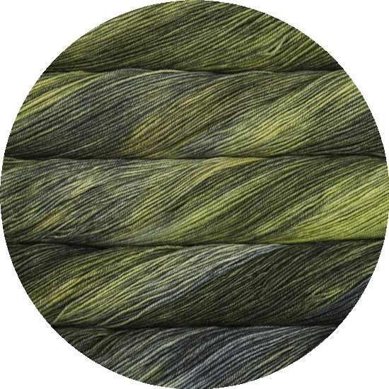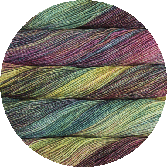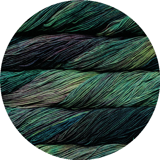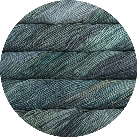 The body is worked with half twisted ribbing on the right side and simple 1x1 ribbing on the wrong side. The piece is finished with a stretchy bind-off (that aids in aggressive blocking) and optional tassels or fringe that can be added at the end. The finished shawl is incredibly versatile, making the perfect addition for chilly spring days and cool summer nights, or a wonderful staple for the fall and winter. Finished project image knitted in the Malabrigo Sock Ivy colorway.