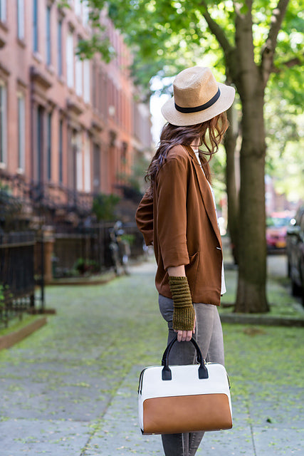 The surprising curved form of these arm warmers translates into artful scrunch that keeps your wrists toasty and adds a futuristic note to your wardrobe. The pattern is worked circularly from the palm to the forearm and makes an entertaining knit as the curved shape emerges. This kit includes enough yarn to make two small pairs or one large pair!