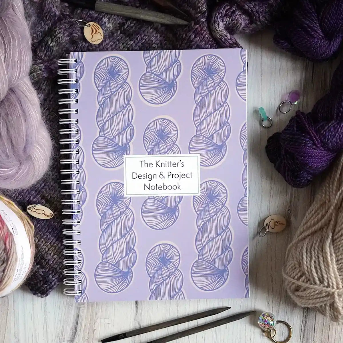 This notebook is a must-have for every knitting enthusiast and designer! It helps you keep your projects and yarn swatches neat and tidy while giving you plenty of space to dream up, tweak, and copy your knitting and colorwork ideas. Sized A5 with a sturdy wire-o binding, it includes 120 pages packed with fun features: a Name Plate, Index, 30 Project Design pages, 28 extra Design pages, Numbered pages, Yarn Swatch Notes, handy References and Ruler, a blank section for your own notes, a charming Inner Cover design, and smooth 80 lb paper. Each comes snugly wrapped in a cello bag!